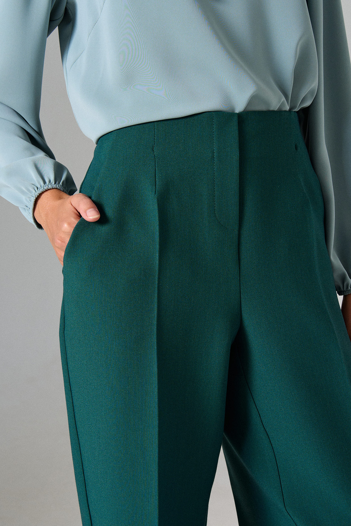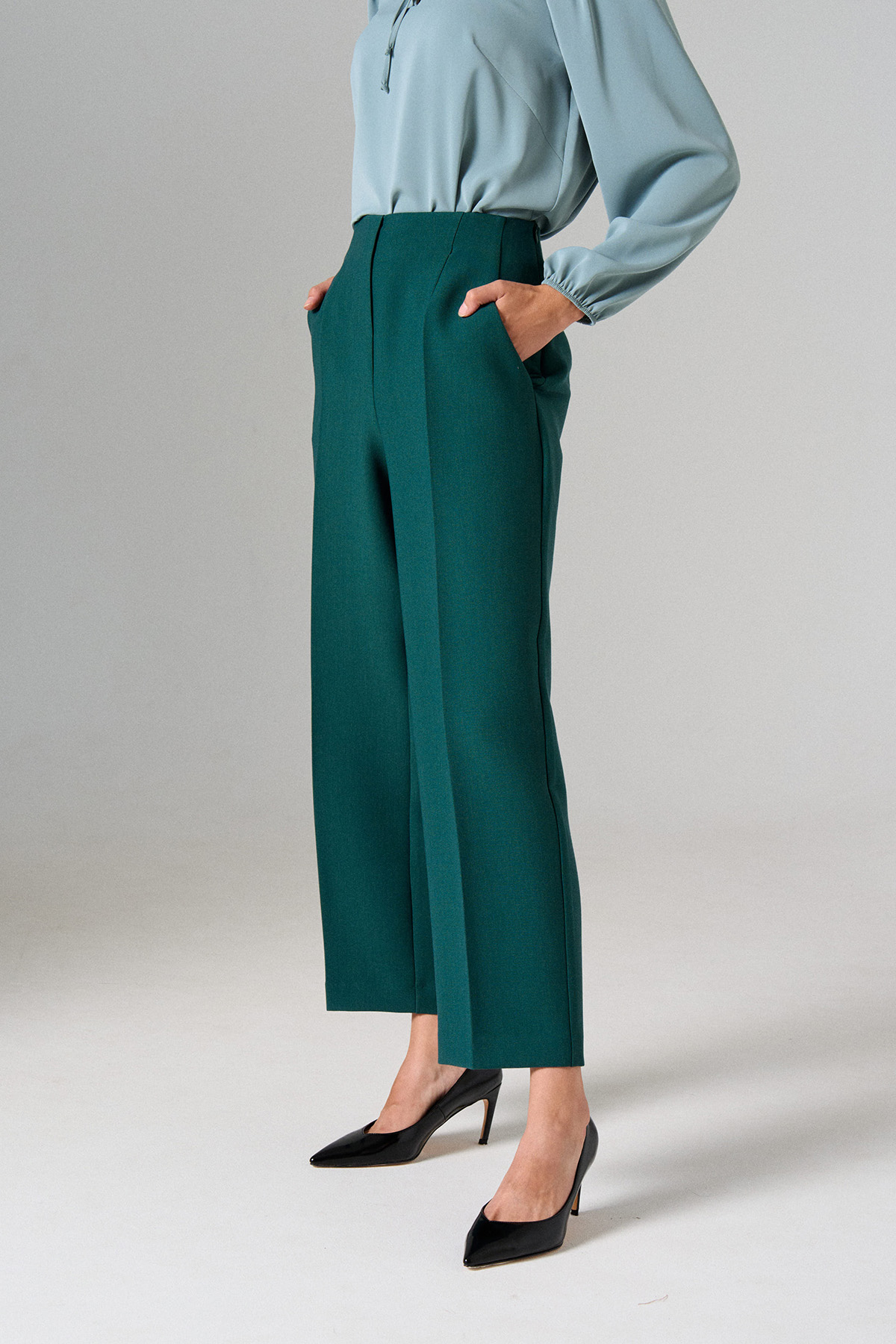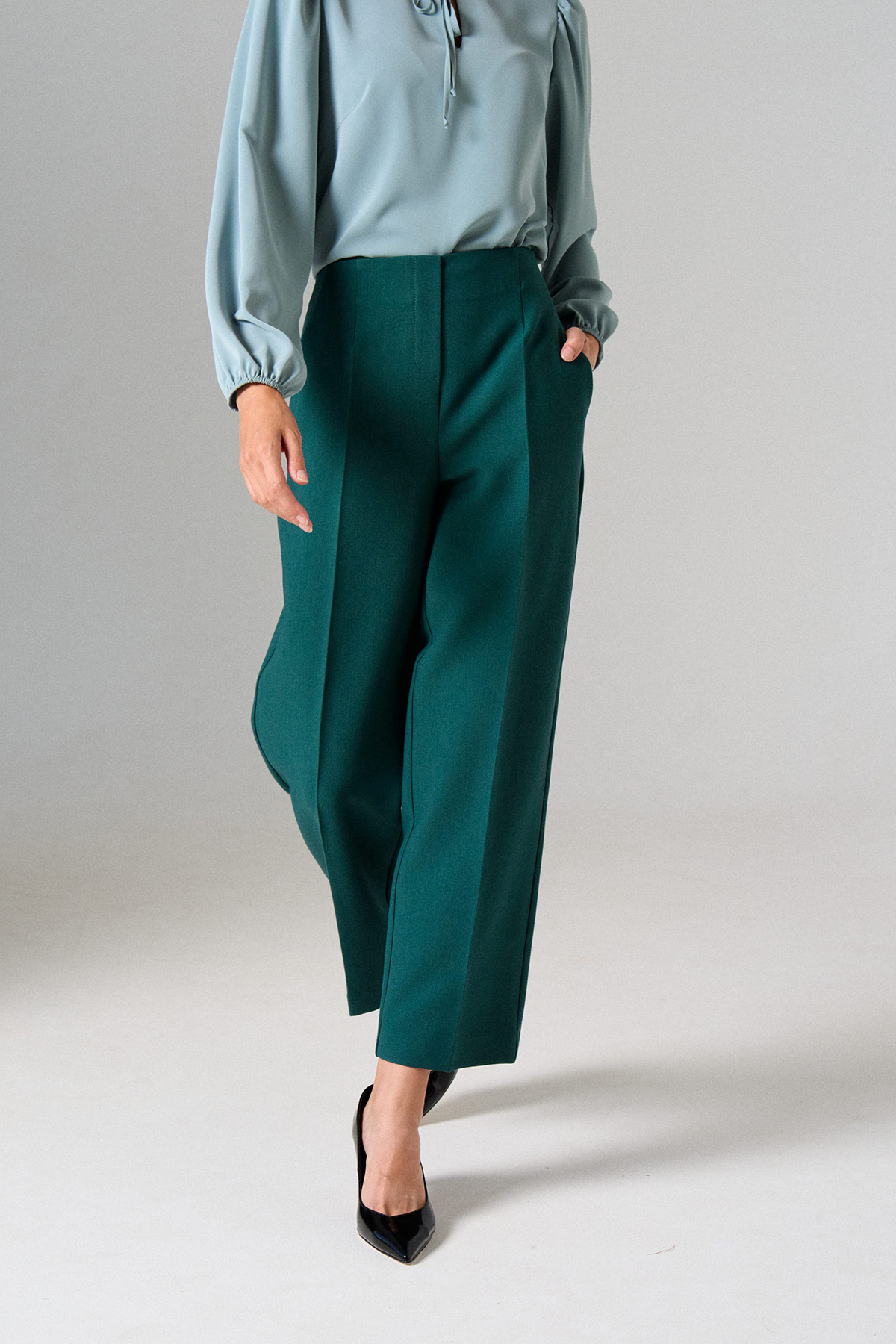 Укороченные брюки прямого кроя.