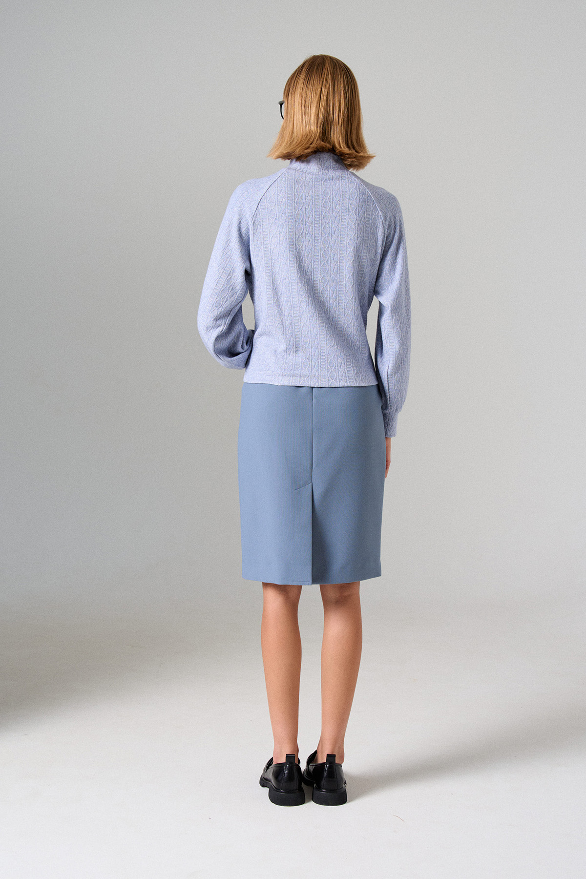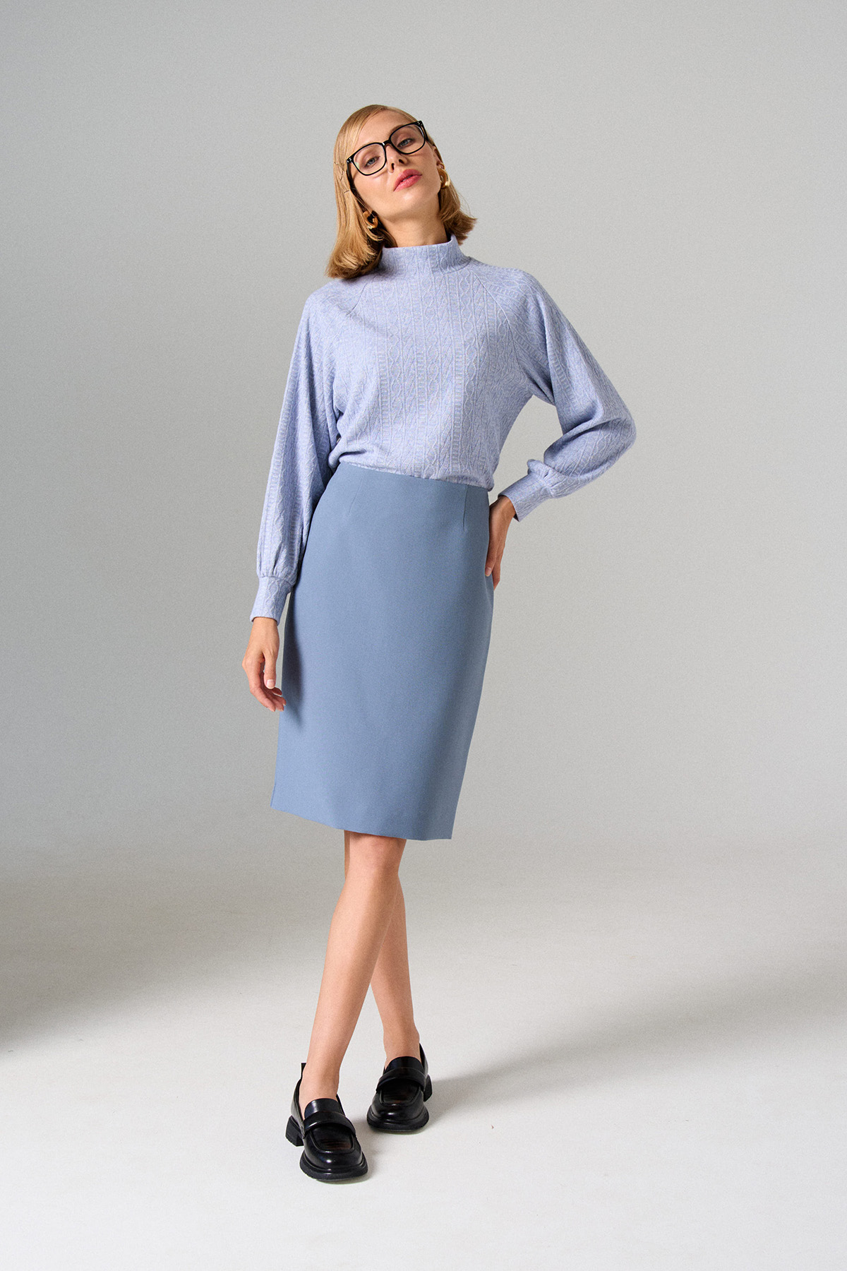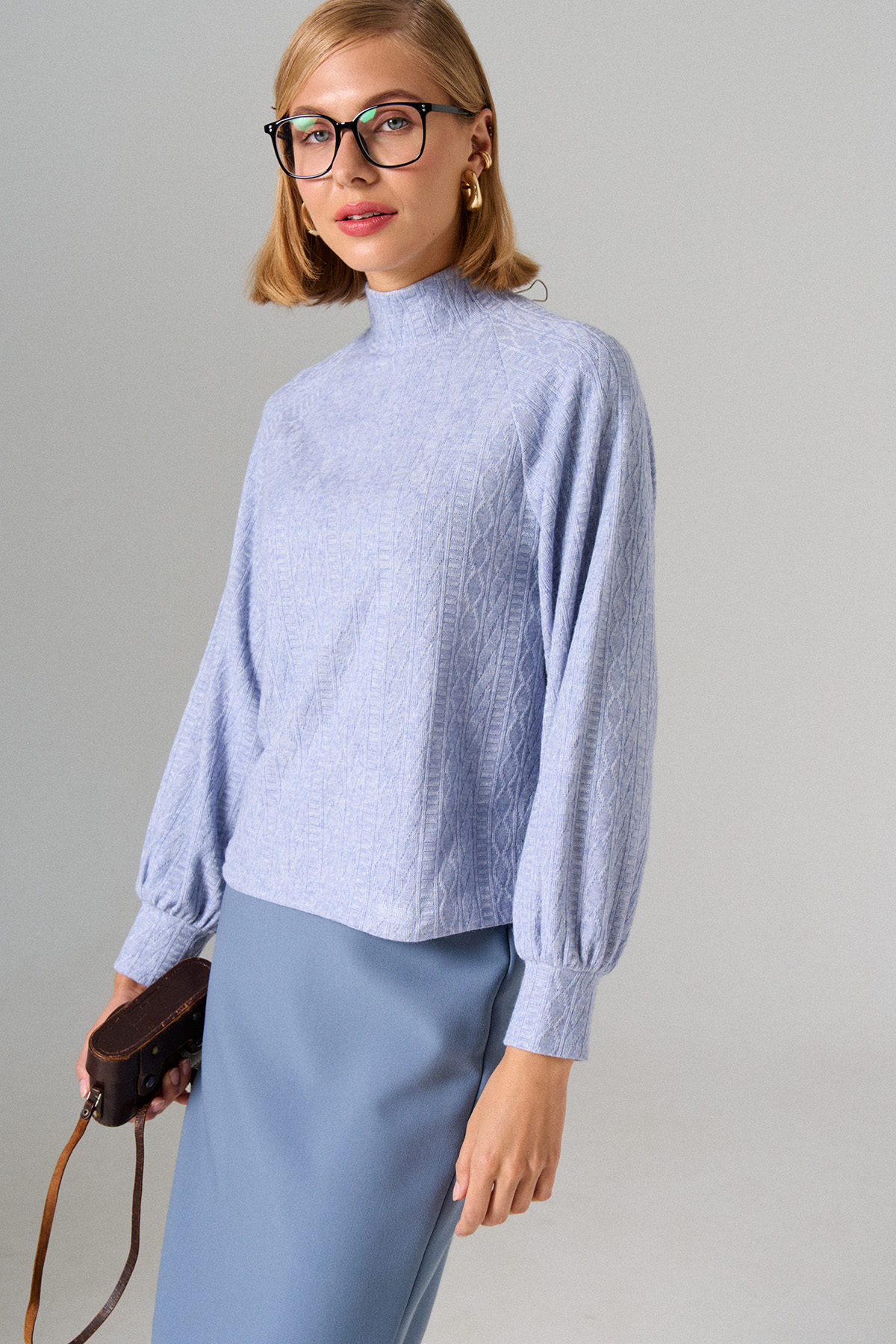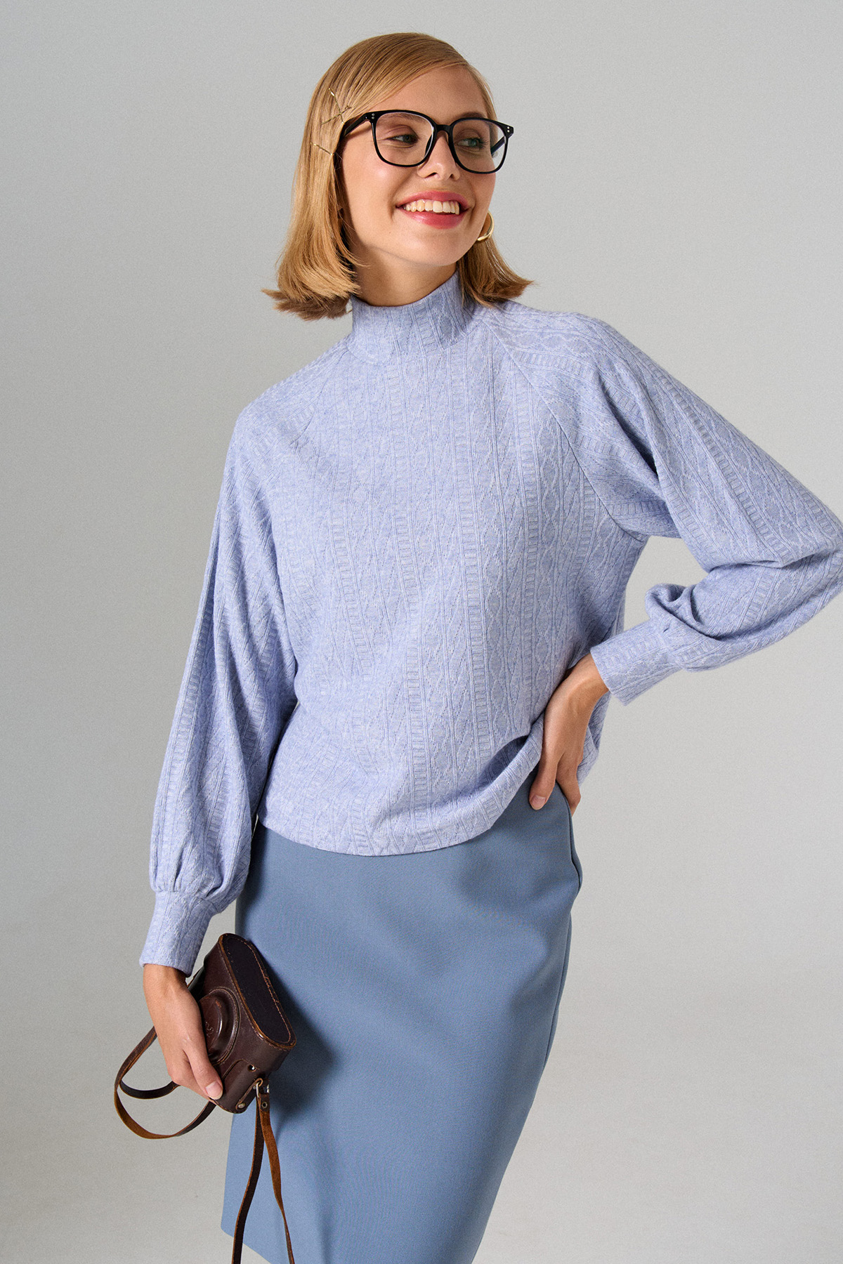 Полуприлегающий силуэт, мягкая свободная стойка, комфортный рукав реглан.